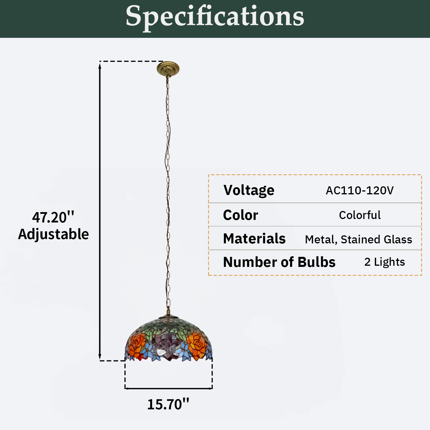Material: Metal, Stained Glass